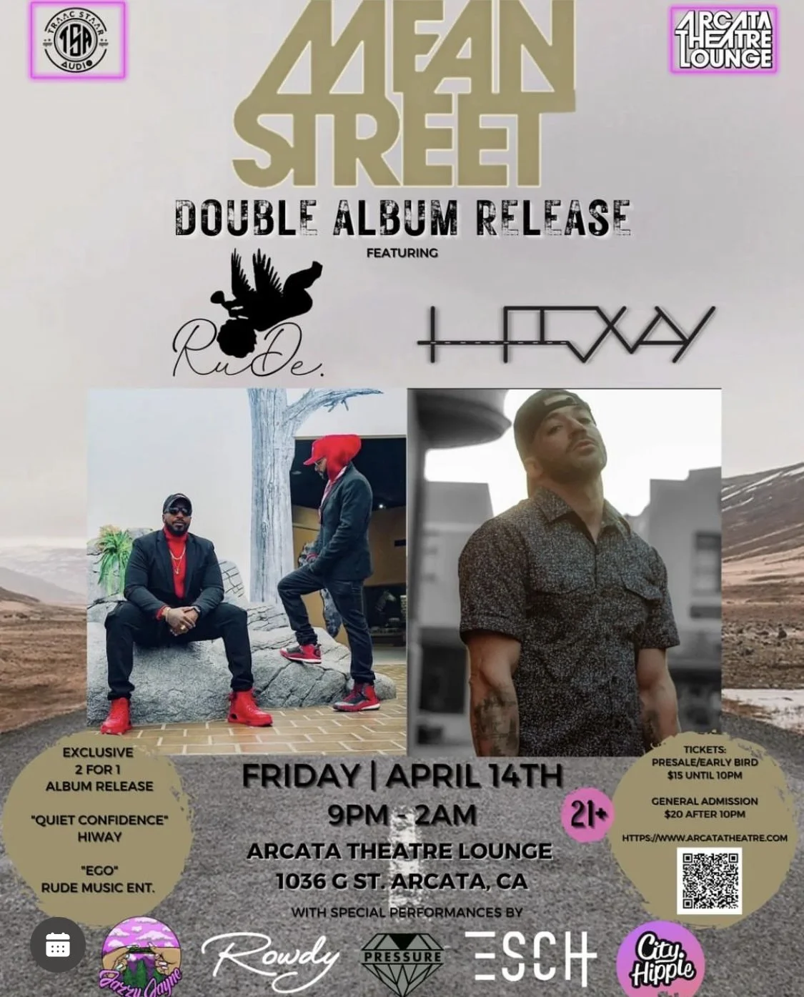 Album Release Party for Rude Music Entertainment’s “Ego” Album and HiWay’s “Quite Confidence” Album, with special guest performances by City Hippie, Rowdy, Jazzy Jane, Gabe Pressure and Esch with host Kemistree. This is a 21 and over event, tickets can be purchased at https://www.arcatatheatre.com/calendar